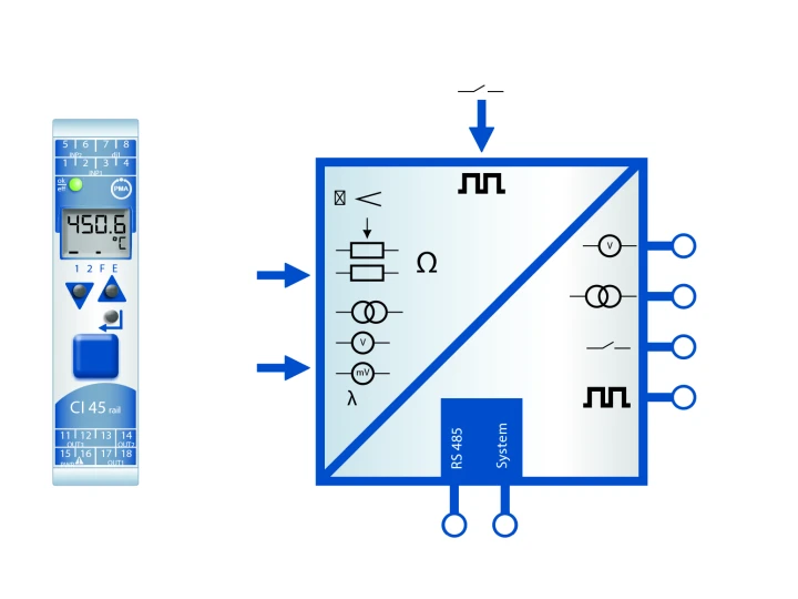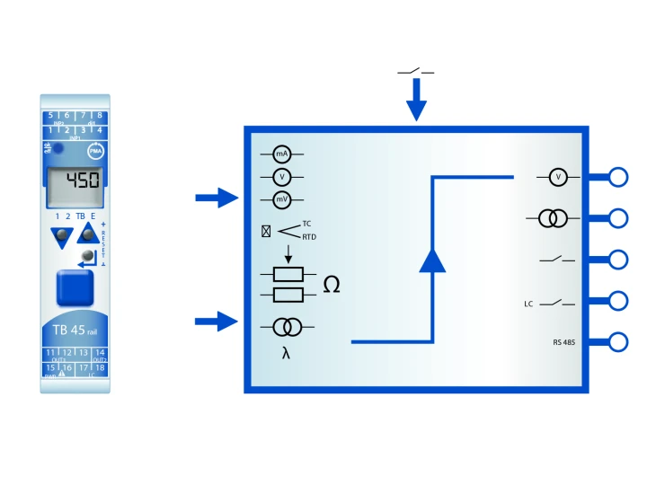 - Bemenet termoelemekhez, ellenállás-hőmérőkhöz, feszültség- és áramjelekhez