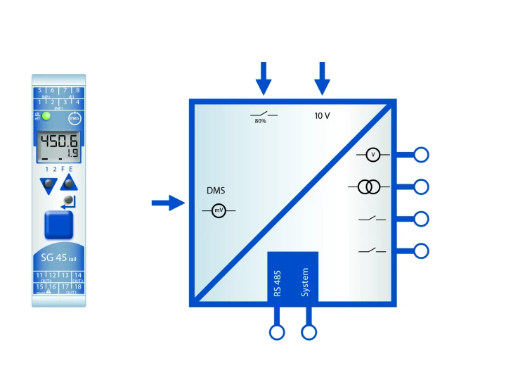 - Fő vészhelyzeti és két segédhatároló relé vagy egy határoló relé és analóg kimenet
